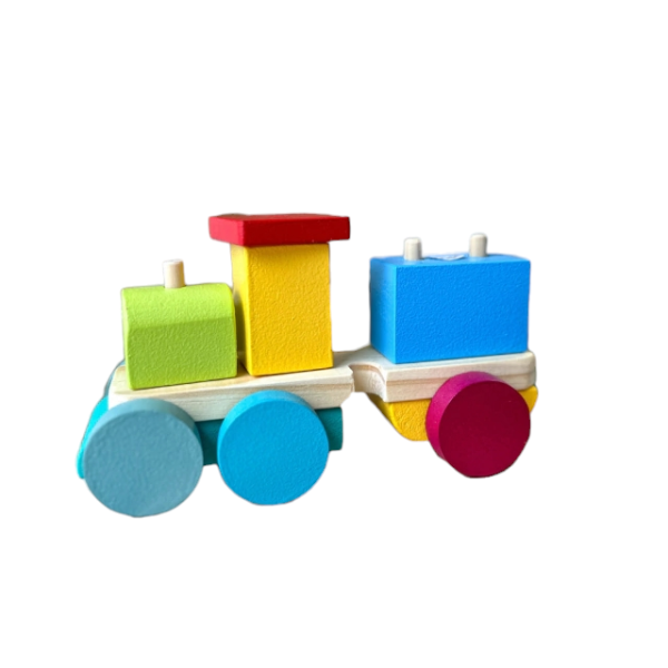 Rodado didactico de bloques desarmable, juego de ensarte, rompecabezas y arrastre.